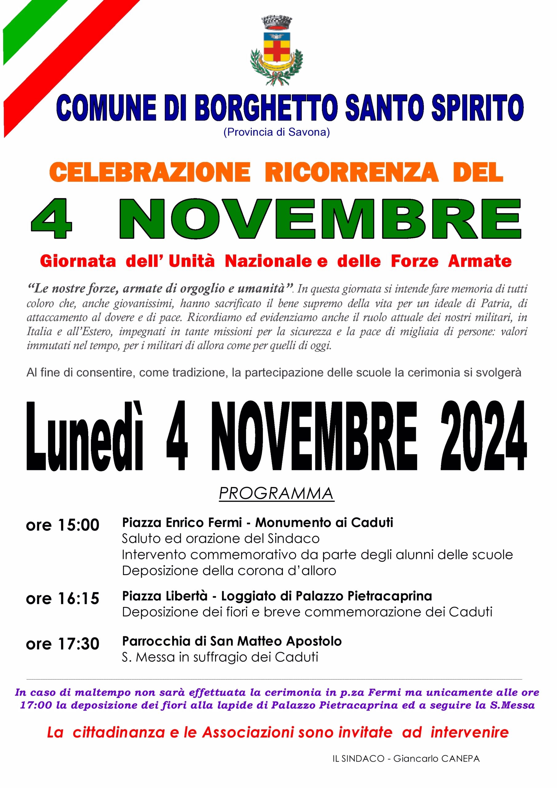 l’Amministrazione Comunale ed i cittadini ricorderanno e commemoreranno tale ricorrenza con il seguente programma: