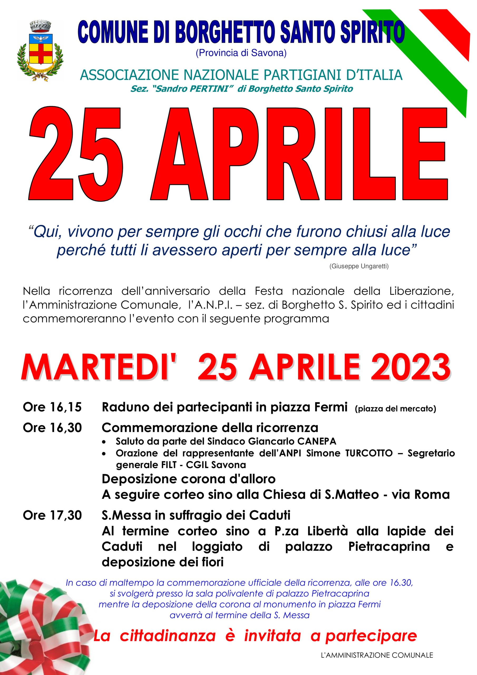 La ricorrenza della Festa nazionale della Liberazione Martedìì 25 APRILE 2023