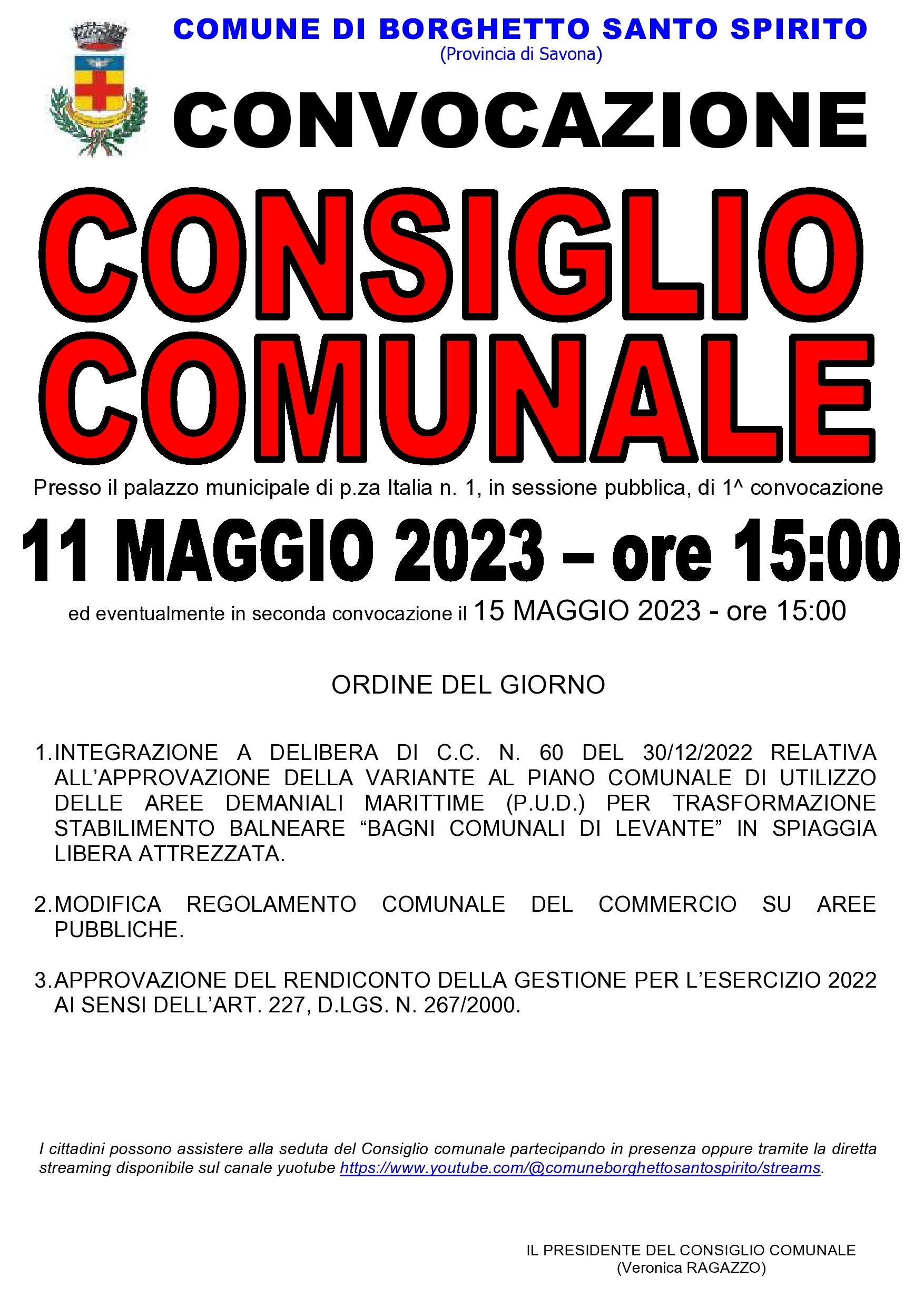 Convocazione del Consiglio Comunale del 11.05.2023 e Aggiunta proposta di deliberazione da trattare (ex art. 33, comma 9, Regolamento Consiglio Comunale).