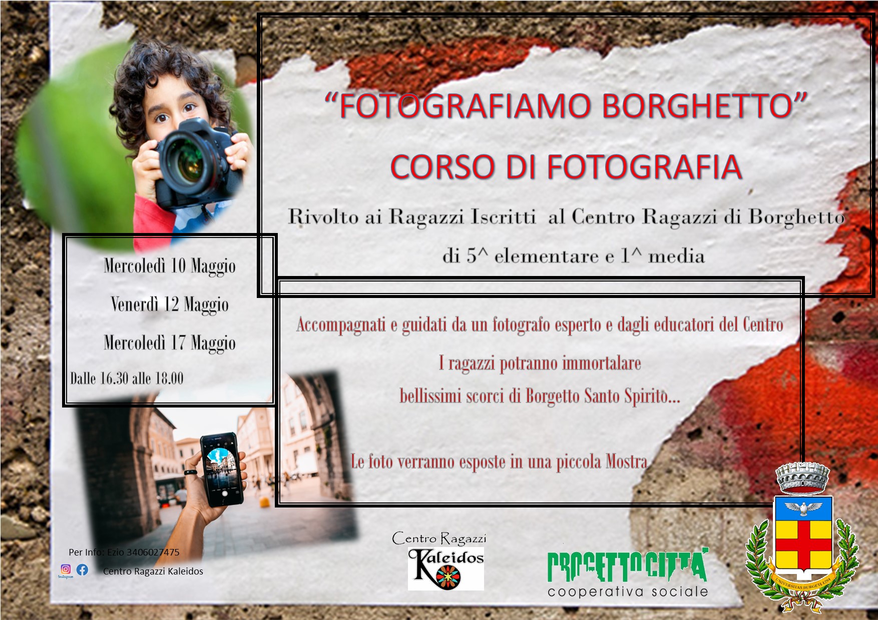 "Fotografiamo Borghetto" - Corso di fotografia per i Ragazzi iscritti al Centro Ragazzi di Borghetto Santo Spirito, di V^ Elementare e I^ Media.