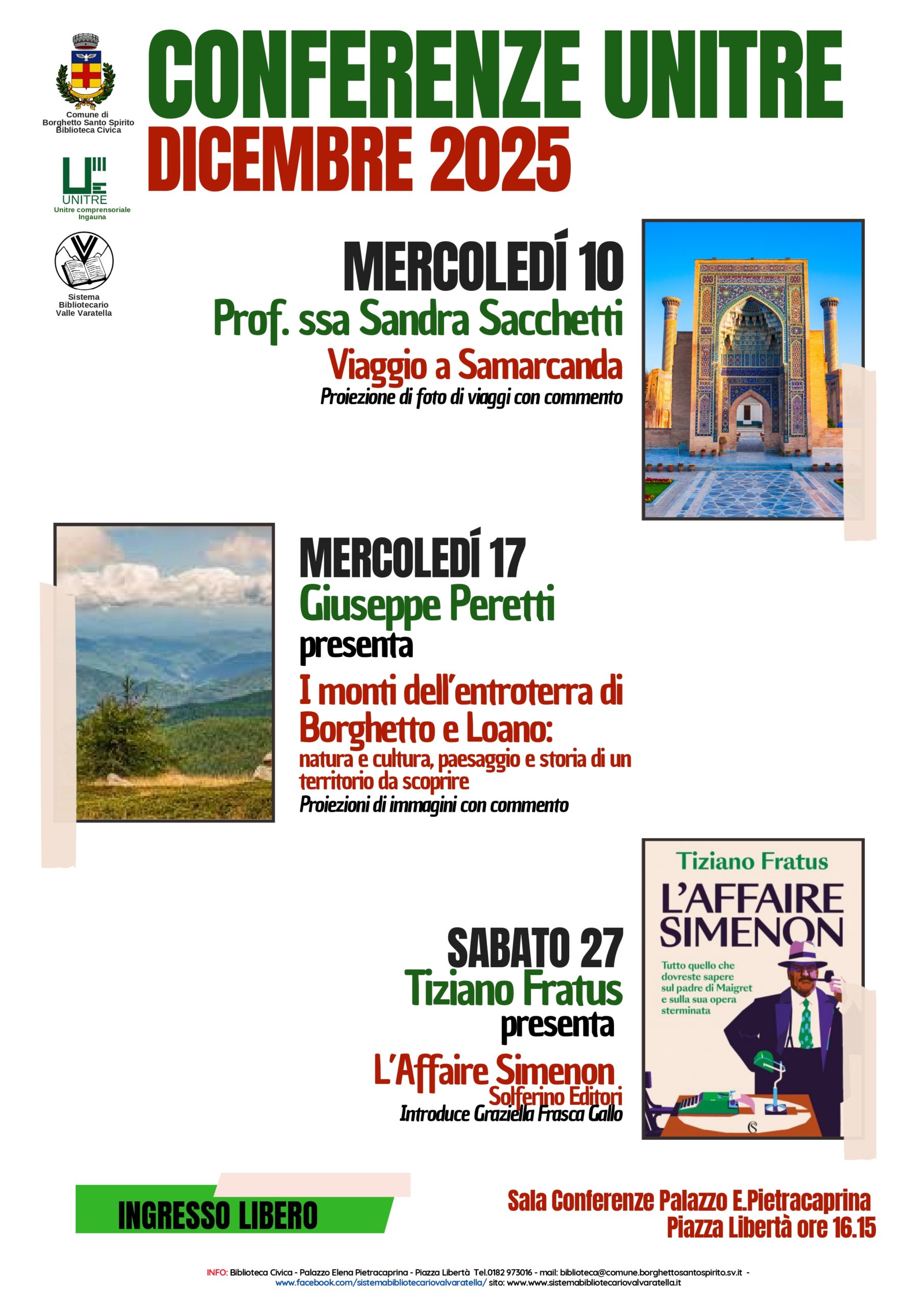 UNITRE Borghetto Santo Spirito - Sandra Sacchetti Presenta “Viaggio a Samarcanda” Palazzo E. Pietracaprina - Mercoledì 10 dicembre 2025 ore 16:15